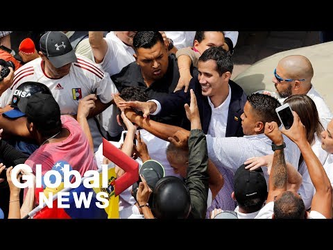 Large crowds gathered to welcome the Venezuelan opposition leader after his trip round Latin America. The US has warned of a "swift response" to any threats against Juan Guaido.
